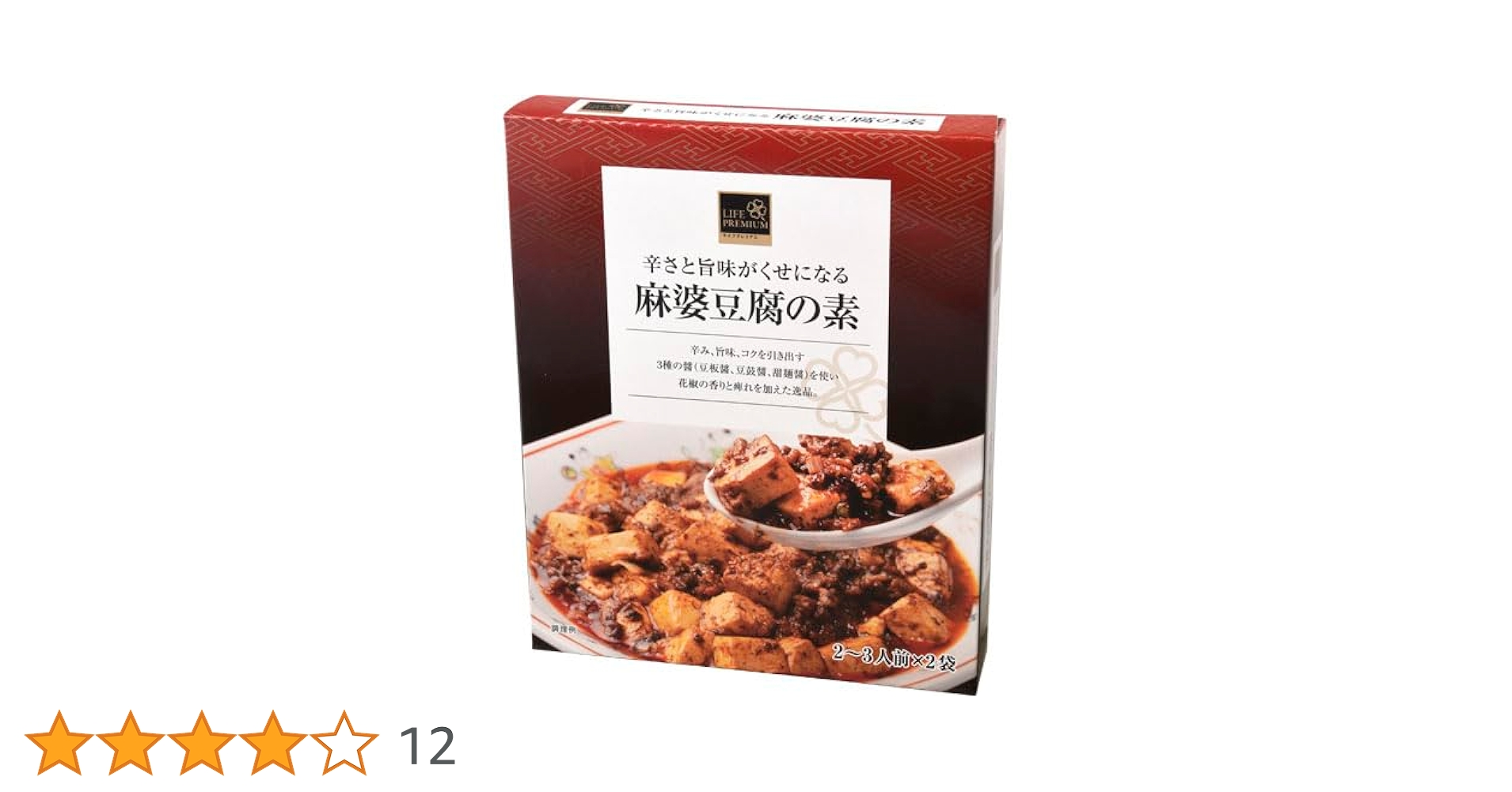 ⬇︎『ライフプレミアム 辛さと旨味がくせになる麻婆豆腐の素』(PB商品と侮るなかれ。国産の素の中ではトップクラスの本場感。)日本製