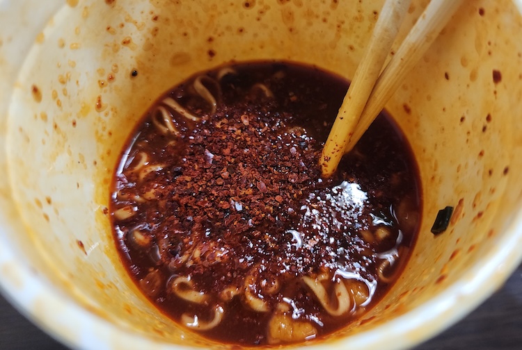 カップヌードルには珍しく、別添の一味唐辛子がたっぷり付いているのでしょうか!