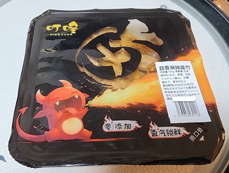 「叮咚(Ding Dong /ディンドン)」というメーカーの『蒜香麻辣腐竹』です。