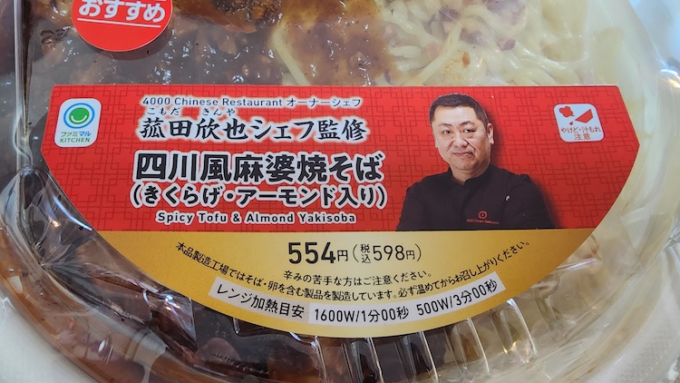 ファミリーマートで『4000 Chinese Restaurant オーナーシェフ 菰田欣也(こもだきんや)監修 四川風麻婆焼そば(きくらげ・アーモンド入り)』を買ってきました。……商品名が長い!(笑)