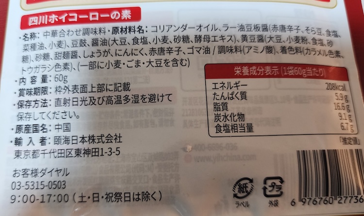 よく見ると、日本語の部分はステッカーが貼られているようです。中国語パッケージの上から日本語のステッカーを貼って日本市場仕様にしているのです。 そういえば、麻婆豆腐の素の時もそうだったっけ。
