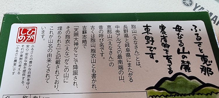 裏面には恵那(恵那山)などについての解説があります。