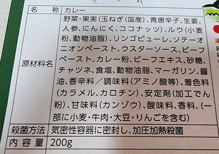 特筆すべきは砂糖の使用量が少なそうだということですね。 日本のカレー(欧風カレーとか)って、砂糖が原材料の上の方にきているものが多いんですよ。 (原材料は法律で使用量の多い順に記載しなくてなならない) ひどいものになると味付けのど頭に糖類がきているものだってありますからね。