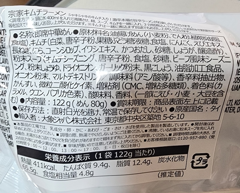 ちなみに、なぜか韓国ではなくタイで製造されているようです。 韓国国内で発売されている同商品もタイで作られているのでしょうか?それとも、海外仕様で安く作ったものを日本に輸入しているのでしょうか?不明です。 まあ、おいしければ別にどこ製だろうがどうでもいいんですけどね。