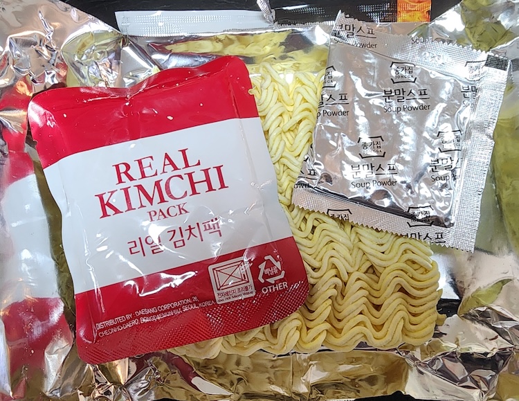 中身は、乾麺、粉末スープ、そしてレトルトパウチ入りのキムチです。