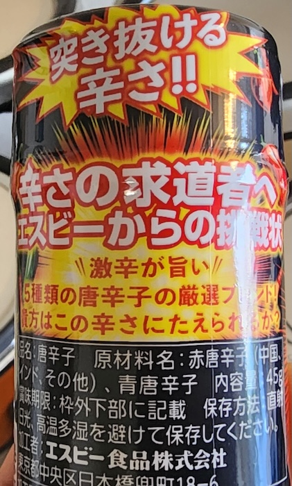 なんと、5種類の唐辛子を使用しているようです! これは、僕の『七海涼辛子®』(7種類の唐辛子使用)と似たようなコンセプトですね。さすがそこに目をつけるとはスパイス&ハーブのエキスパート、エスビー食品です!
