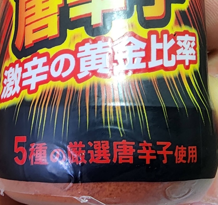 『激辛の黄金比率 5種の厳選唐辛子使用』と書かれています。