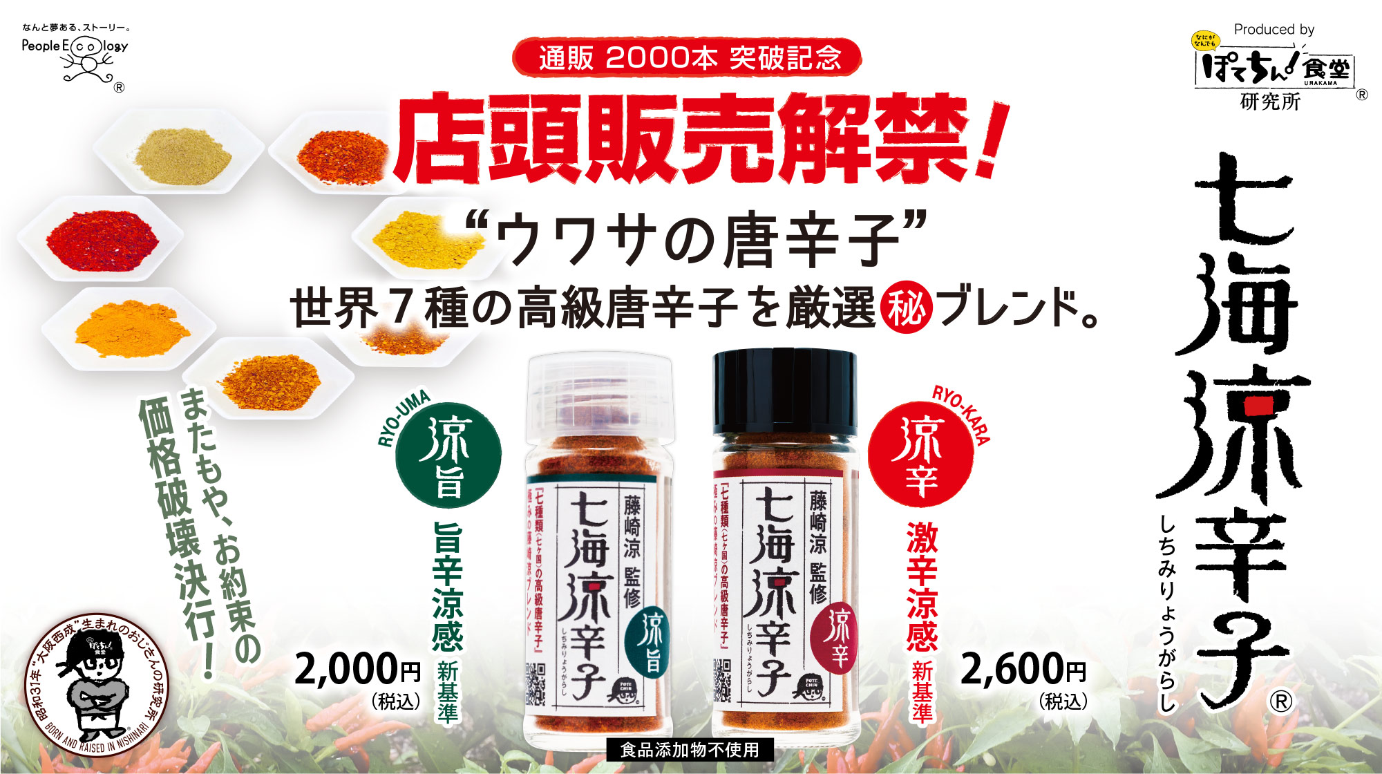 あ、僕(藤崎涼)は、世界各国から厳選した7種類の唐辛子を使用した辛味調味料(唐辛子)『七海涼辛子®(しちみりょうがらし)』をプロデュースしています。