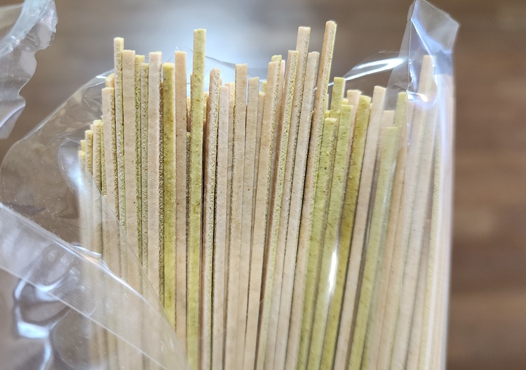 見た目はうどんっぽくはないですね。どちらかというと黄色い蕎麦。韃靼蕎麦的な?