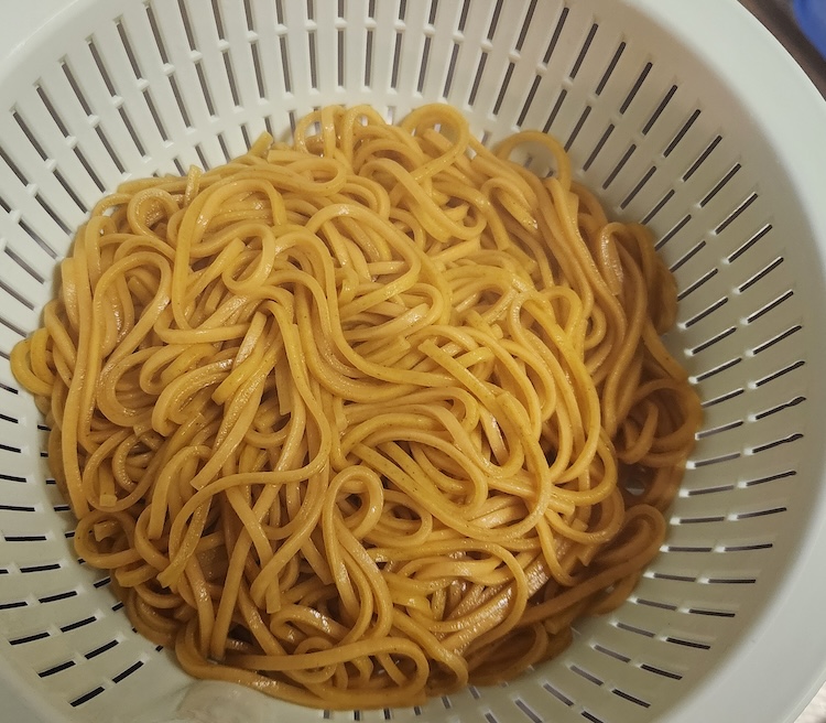 茹でたらカレー麺と唐辛子麺の色の違いががわからなくなりました。