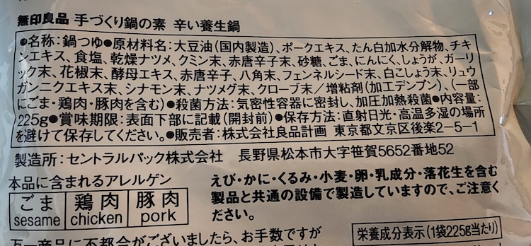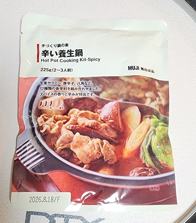 無印良品の鍋の素。『辛い養生鍋』というのがあったので買ってきました。