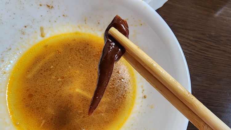肝心の辛さですが、食べていくうちに、じんわりと辛味がやってきます。 唐辛子単体の辛さというよりは、生姜や花椒などの痺れが加わった、まさに「スパイシー」な感覚。とはいえ、レベル3相応の穏やかな辛味です。