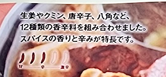 辛さレベルは5段階中の”3″なので、辛さは期待できません。