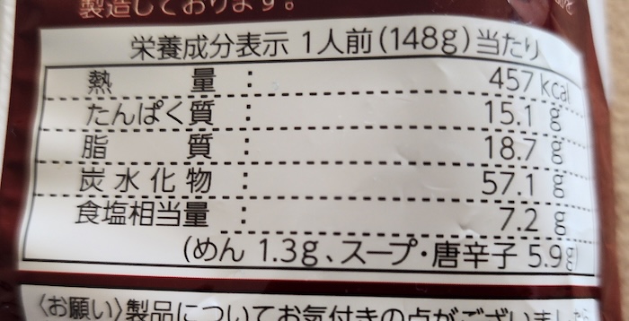カロリーが意外と低めなのは醤油ラーメンだからかな。その代わりに塩分はそこそこ多めです。