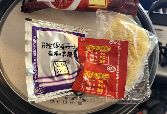 袋を開けると、生麺、液体スープ、特製ブレンド唐辛子が入っていました。