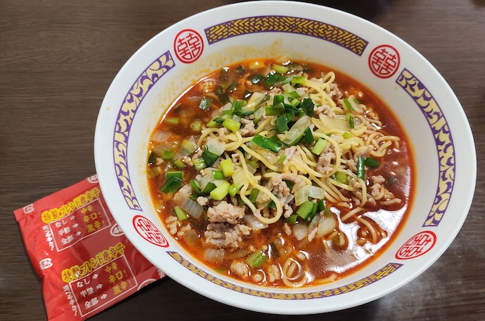 食べてみると……、 おお、唐辛子の風味がなかなか良いし、辛味も増しました!「激辛」というほどではないものの、ちゃんと辛口です。