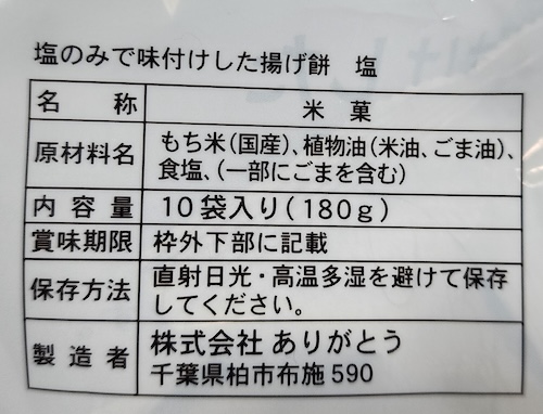 別のブランドとなりますが、これも全く同じものです⬇︎『ありがとう BEST CHOICE 塩揚げ餅』