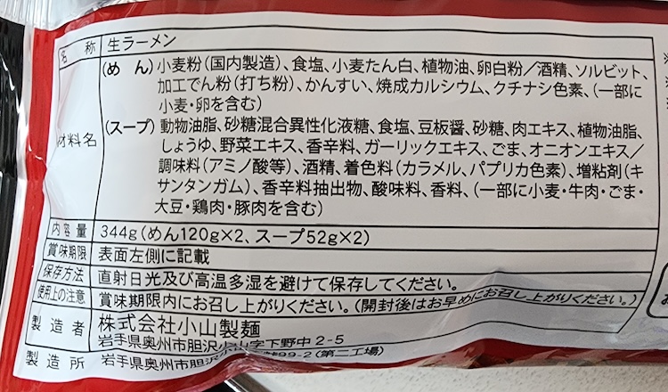 商品説明には『牛肉と野菜の旨みが溶け込んだ旨辛カルビスープラーメン』と書かれていましたが、、『牛肉と野菜の旨み』というのは、動物油脂(なんの動物だ?)、肉エキス(なんの肉の?)、野菜エキス、ガーリックエキス、オニオンエキスあたりがその役目を果たしていると思われます。