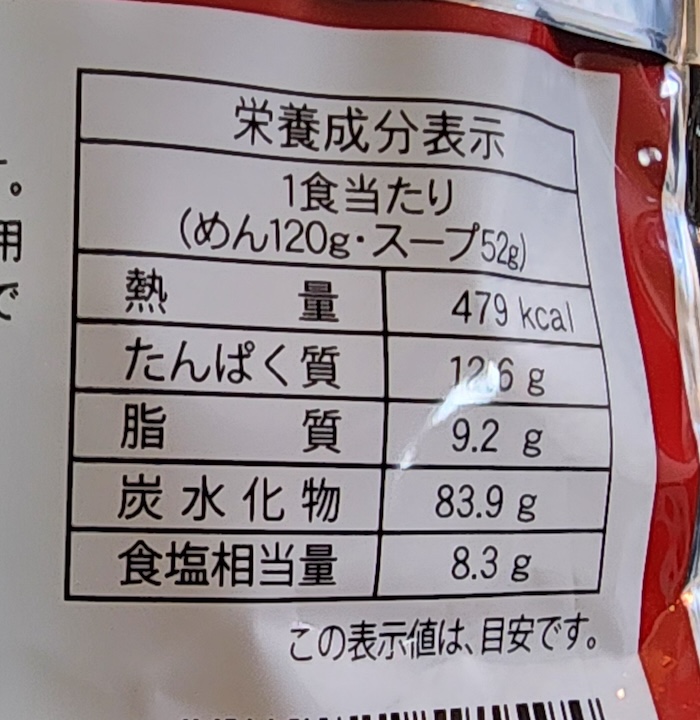 食塩相当量が8.3グラムというのはまあまあヤバいですね。 まあ、ラーメンだからそんなもんでしょうけど。