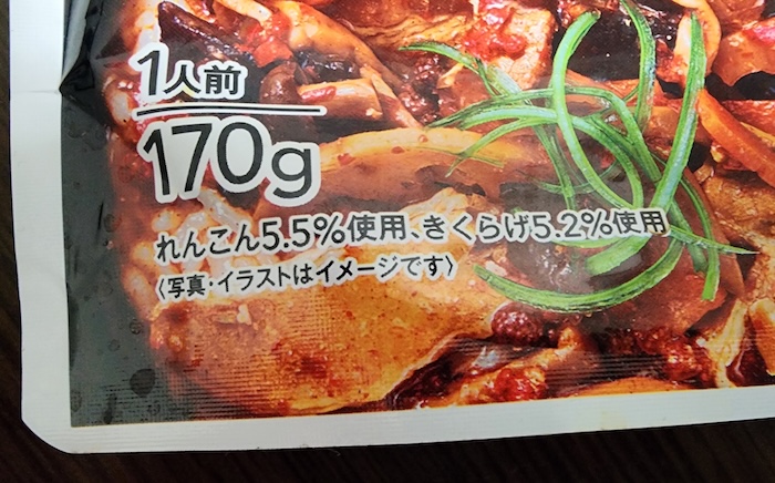 れんこん5.5%、きくらげ5.2%使用との事。 わざわざ配合量をアピールしている割には数値が低いような気がしますが・・・。 僕はそれよりも肉をたくさん入れて欲しい!