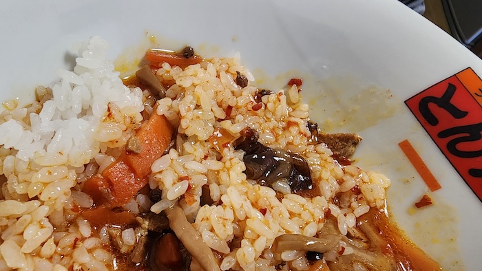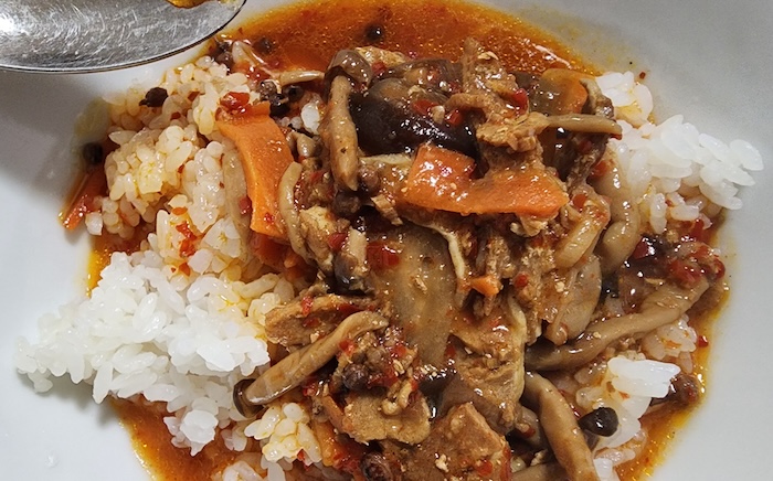 おや? 意外とちゃんと麻辣です! 日本の麻辣食品は「麻」や「辣」が弱いものが多い中、この商品はちゃん『麻味(痺れ)』と『辣味(辛さ)』をちゃんと感じます。 でも、全然激辛ではありませんけどね。