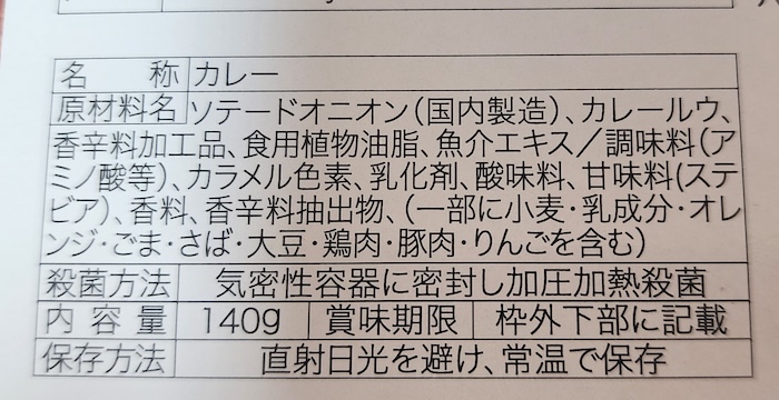改めて原材料を見直しましたが、ソテードオニオン以外に具材らしきものがありません。それもルウに溶け込んでいるのか、固形物はほぼゼロ。